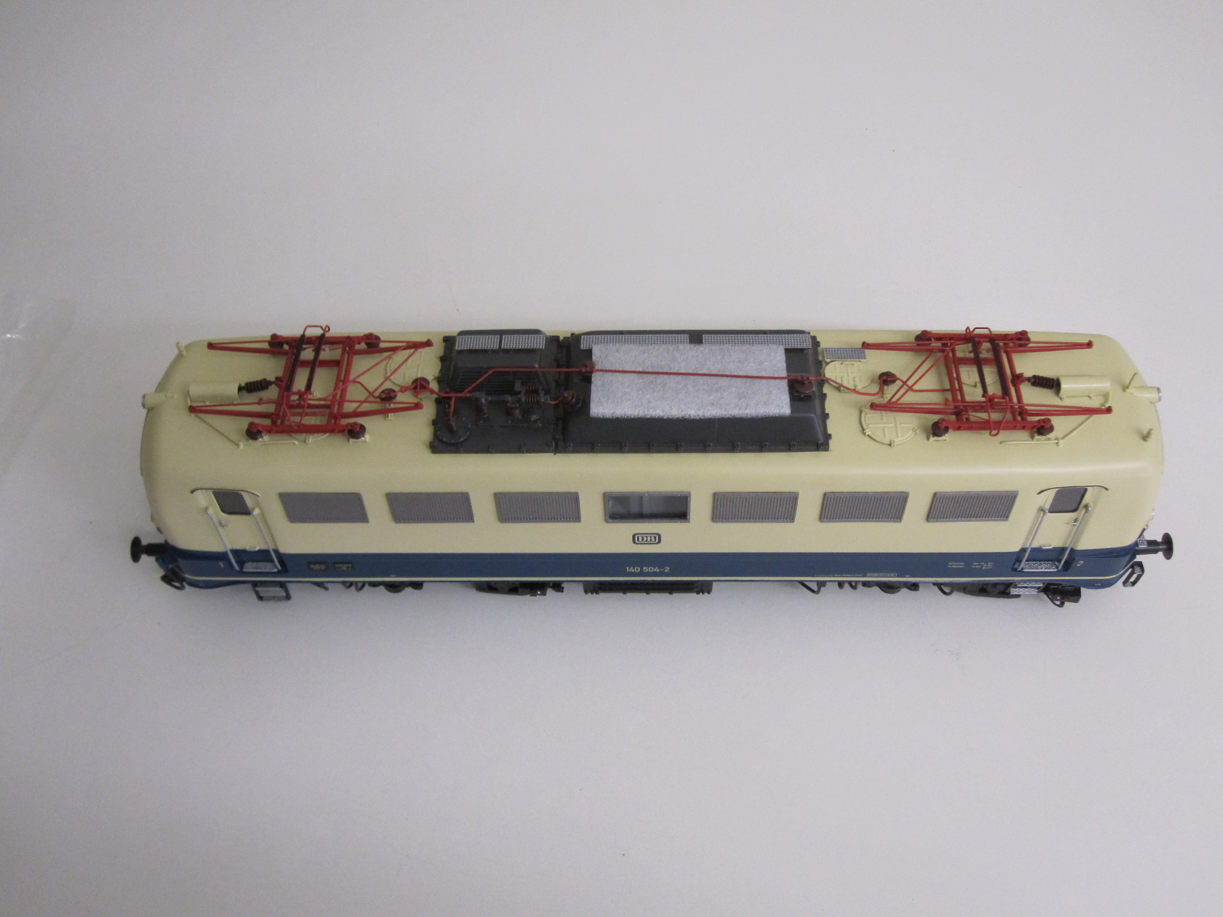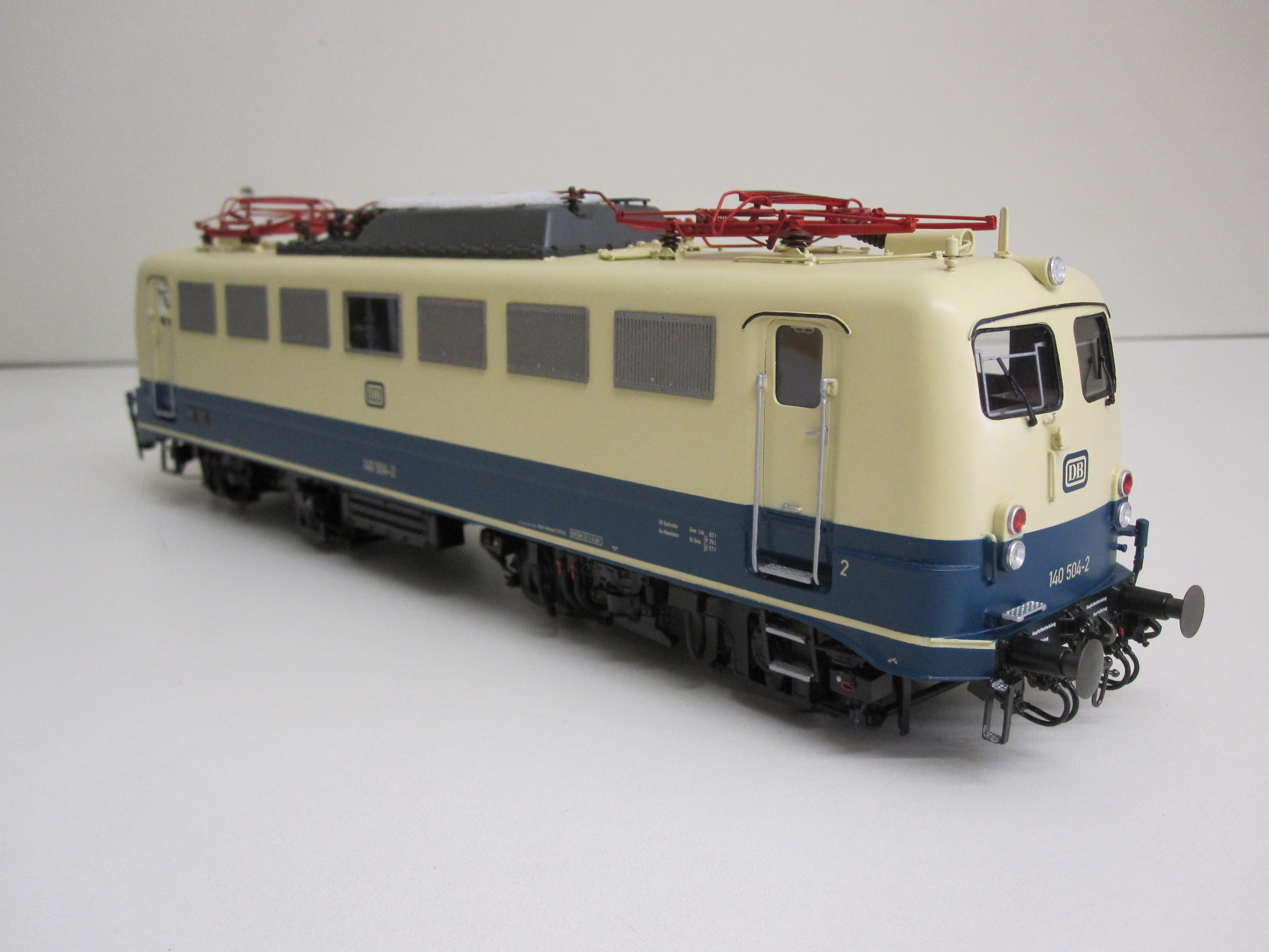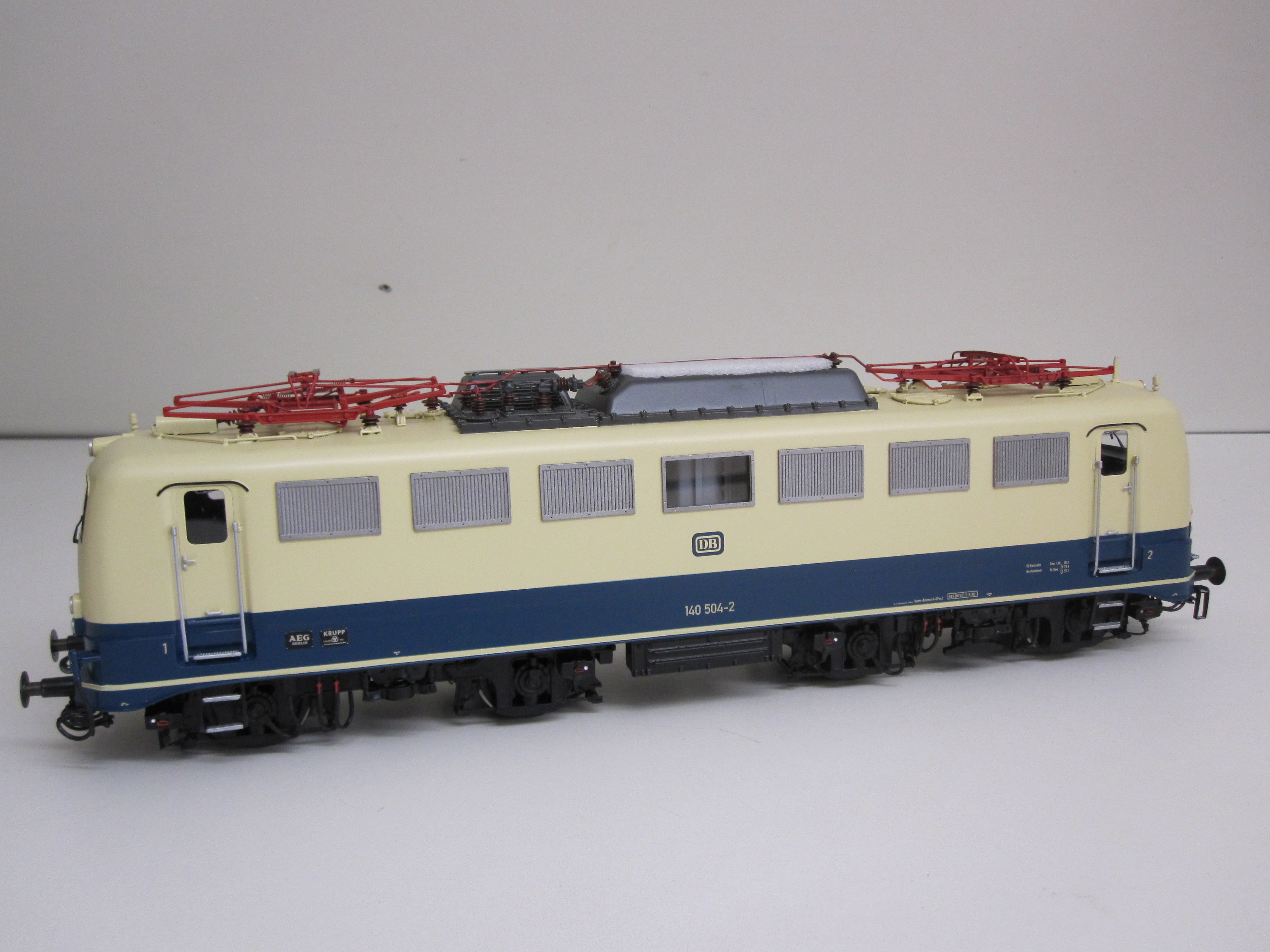 Demko 140 504-2 EP IV in Ozeanblau lackiert mit Doppellampe. Die Lok ist mit einem Zimo Großbahndecoder 695 V mit Sound und Powerbaustein ausgerüstet. Sie hat einen Demko/Helmig Antrieb mit zwei Faulhaber Motoren. Maschinenraumeinrichtung und Führerstände sind nachgebildet. Es ist Echtglas mit Scheibenheizung verbaut. Die Pantographen sind über Servomotoren angesteuert.