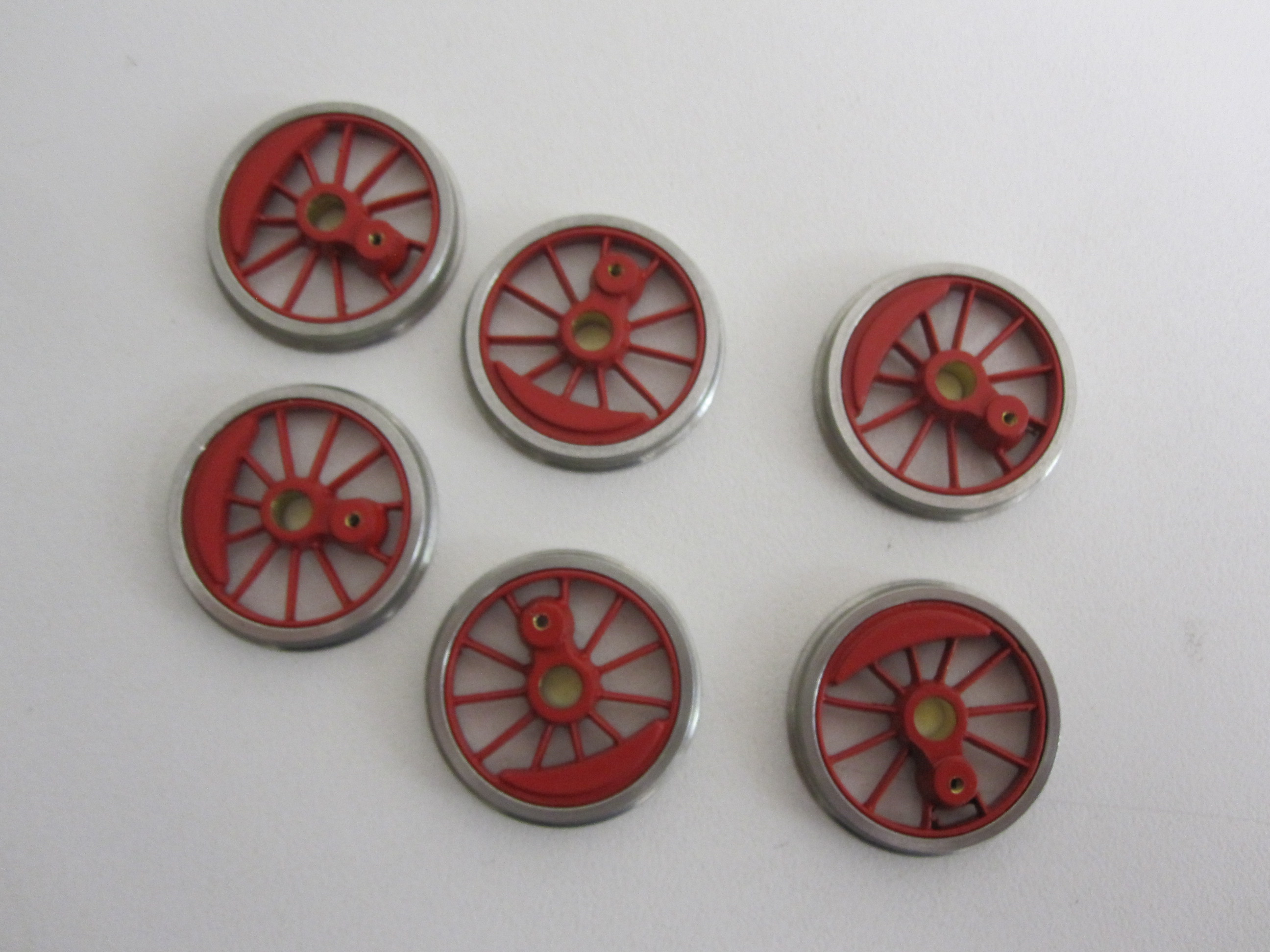 Radsatz für V36. Der Radsatz besteht aus 6 einzelnen Rädern. Die Räder sind Ringisoliert.