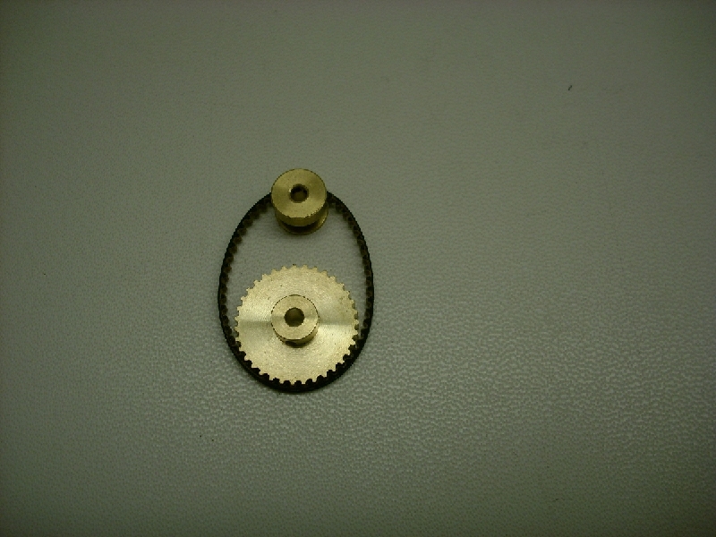 Besteht aus einem Zahnriemenrad 10 Zähne,einem Zahnriemenrad 30 Zähne und einem Zahnriemen. Der Zahnriemen hat eine zweier Teilung und kann zwischen 40 und 70 Zähnen gewählt werden. Weitere Zahnriemenlängen auf Anfrage