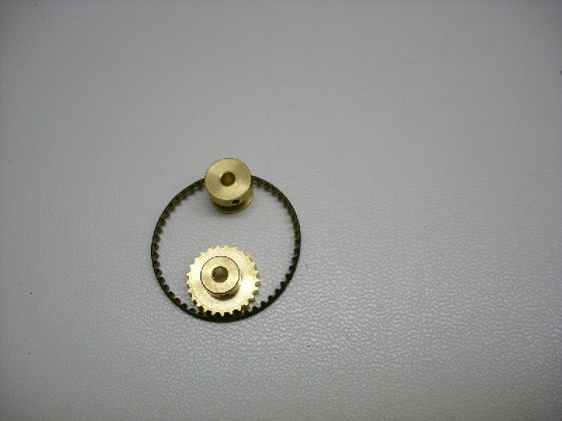 Besteht aus einem Zahnriemenrad 10 Zähne,einem Zahnriemenrad 25 Zähneund einem Zahnriemen. Der Zahnriemen hat eine zweier Teilung und kann zwischen 40 und 70 Zähnen gewählt werden. Weitere Zahnriemenlängen auf Anfrage.