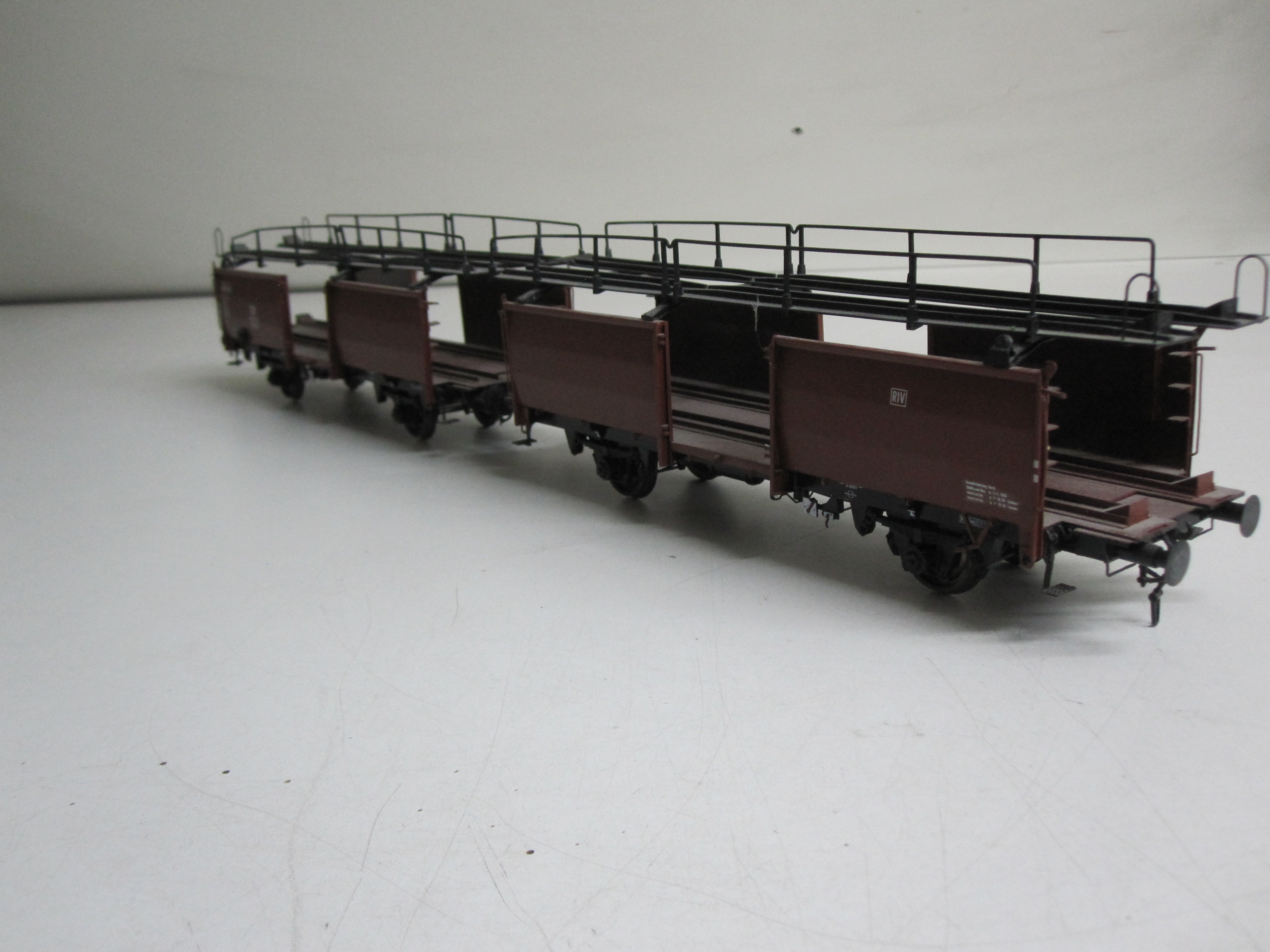 Autotransporter OFF 52 von Kiss. Es ist eine doppeleinheit die aus zwei Wagen besteht. Die Wagen sind aus Messing gefertigt. Zwischen den Wagen fehlt ein Übergangsblech. Siehe Fotos. Die OVP ist vorhanden
