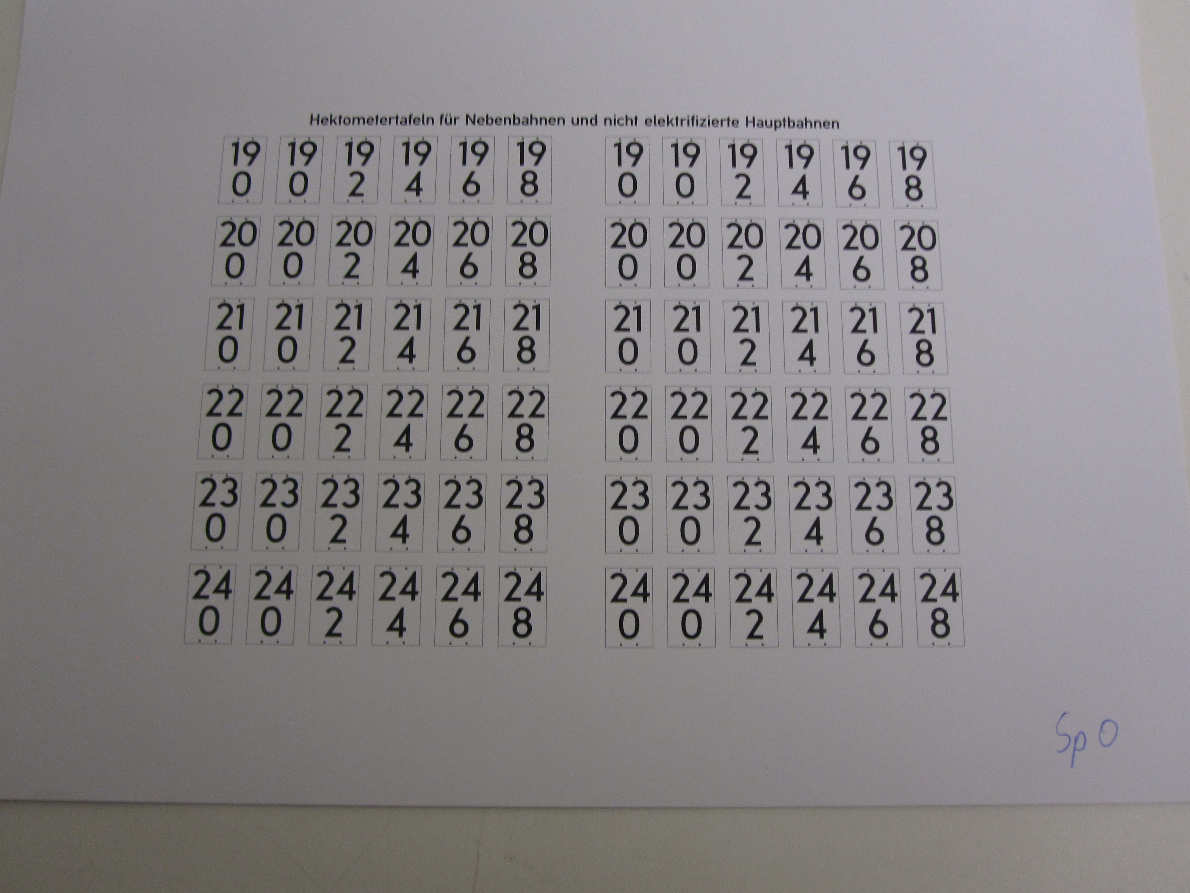 Beschriftungsbogen mit verschiedenen Hectometerzahlen.