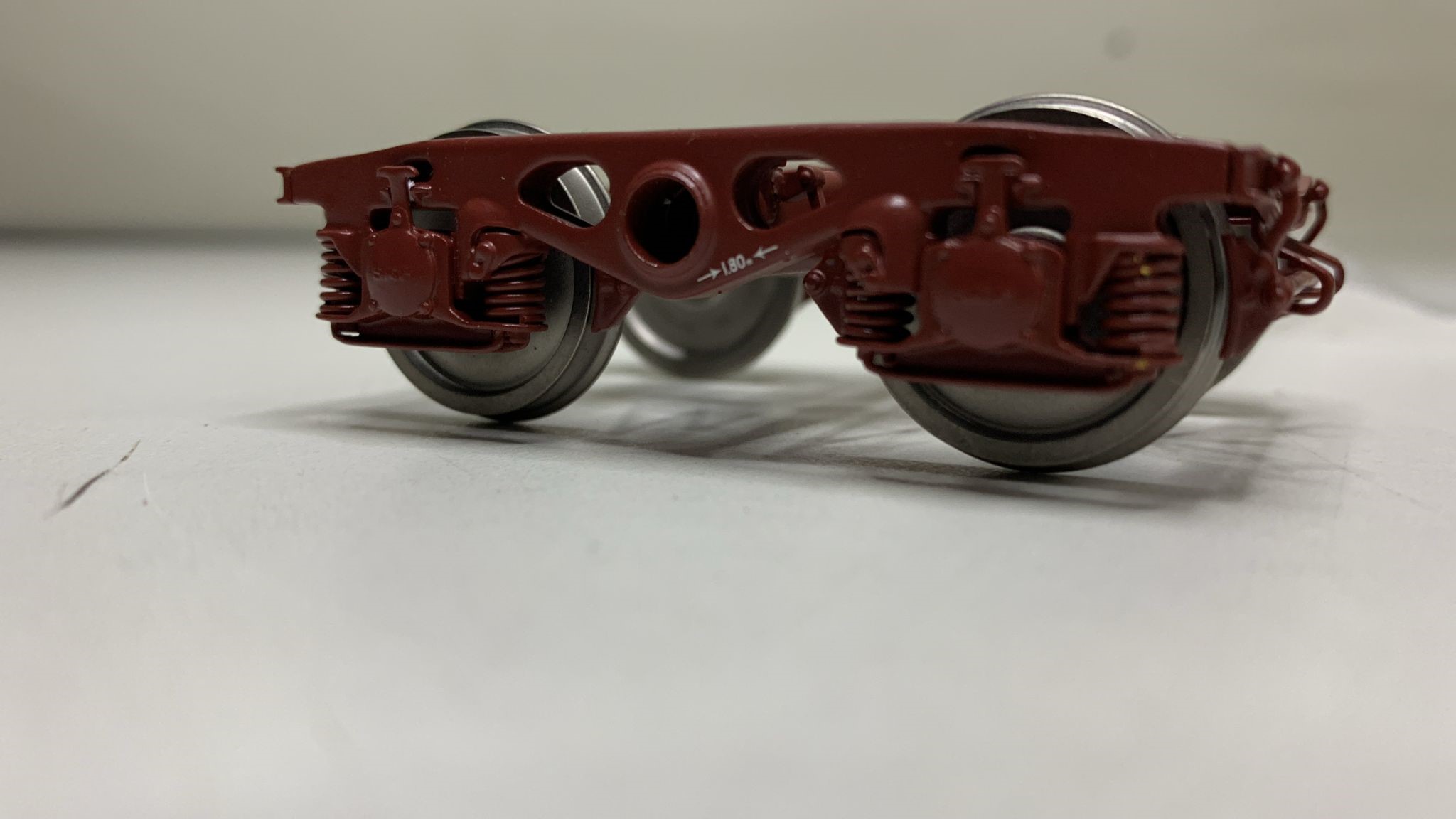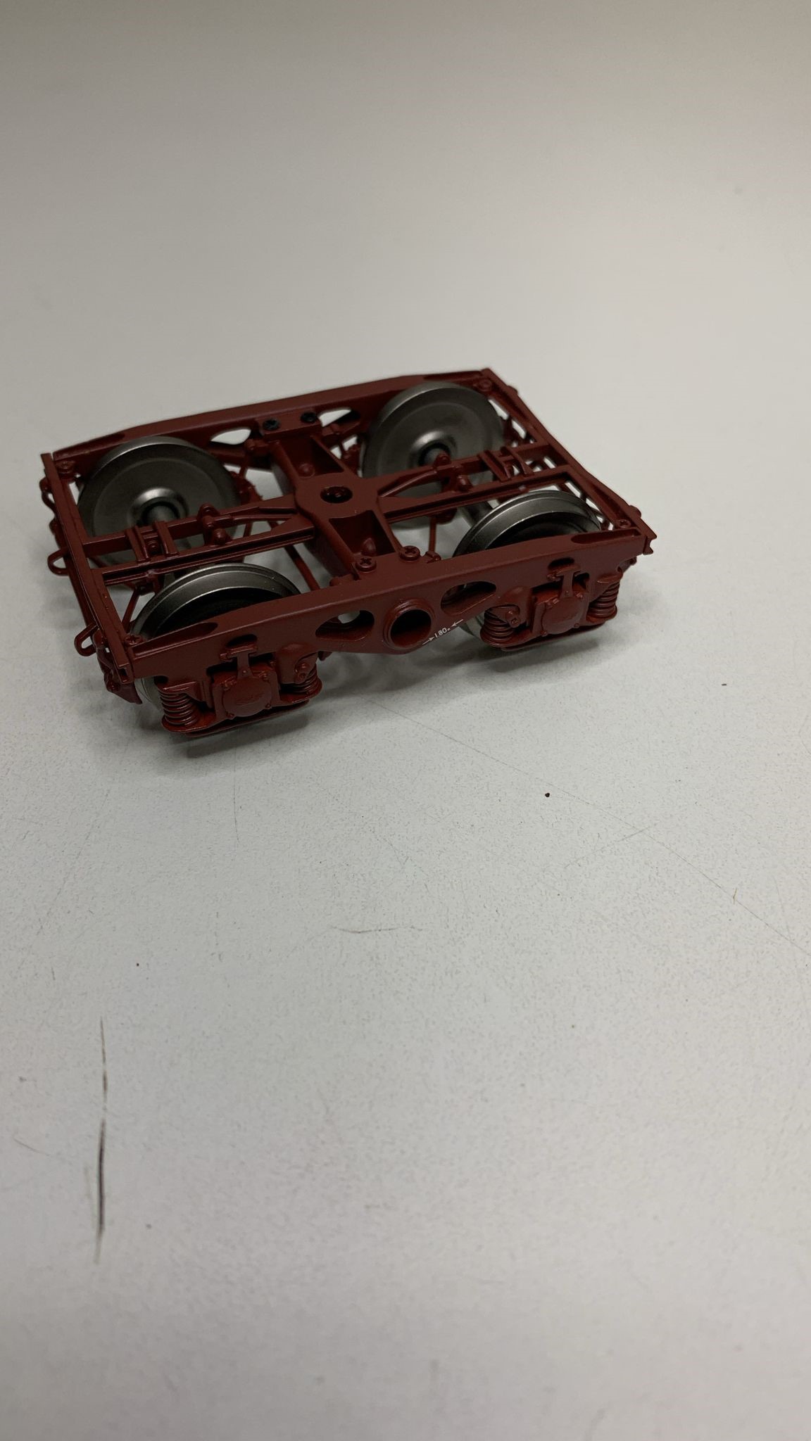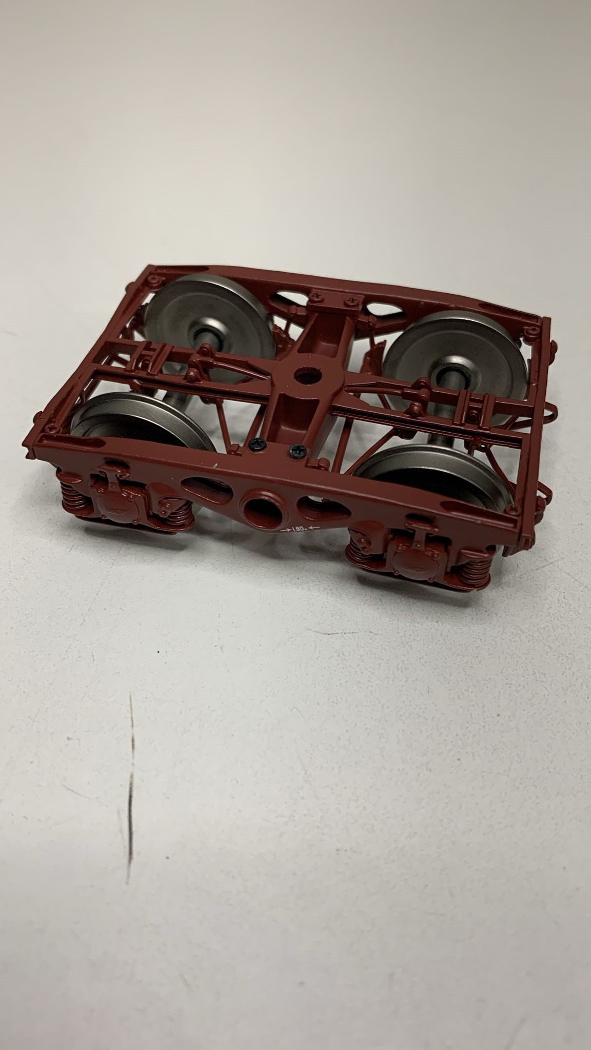 Drehgestell Y25 in gegossener Ausführung aus Messing. Das Drehgestell hat eine funktionierende Federung. Die Bremsen sind nachgebildet. Die Räder sind beidseitig isoliert.